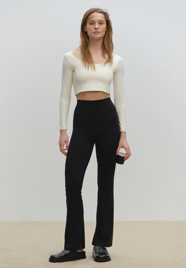 Le legging évasé noir parfait ! on l'adore pour sa ceinture doublée qui apporte un très bon maintien sans sensation d'inconfort. Son petit détail qui fait toute la différence : sa fermeture-éclaire discrète sur chaque bas de jambe pour un usage plus versatile.